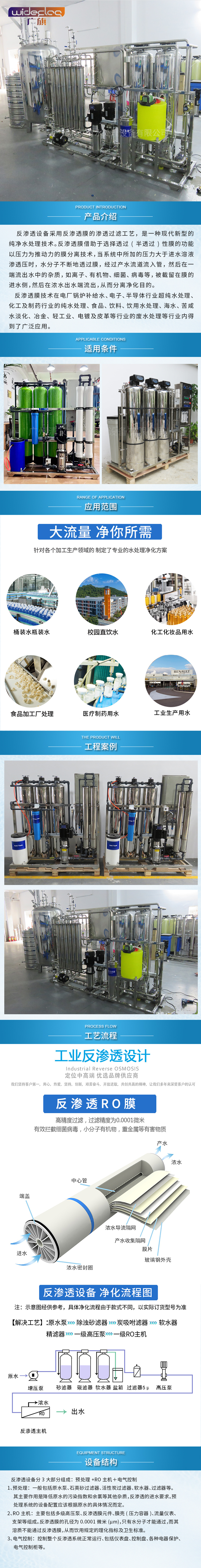 反滲透設(shè)備采用反滲透膜的滲透過濾工藝,是一種現(xiàn)代新型的純凈水處理技術(shù)。反滲透膜借助于選擇透過(半透過)性膜的功能以壓力為推動力的膜分離技術(shù),當(dāng)系統(tǒng)中所加的壓力大于進(jìn)水溶液滲透壓時(shí),水分子不斷地透過膜,經(jīng)過產(chǎn)水流道流入管,然后在一端流出水中的雜質(zhì),如離子、有機(jī)物、細(xì)菌、病毒等,被截留在膜的進(jìn)水側(cè),然后在濃水出水端流出,從而分離凈化目的。